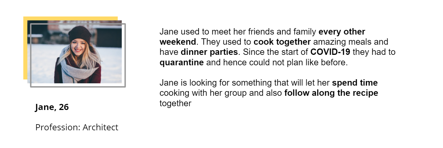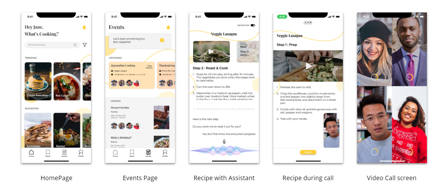 Finding a way to stay connected and enjoying group activities while we are trying to stay safe in our homes is quite a challenge. I wanted to design an app which will help people cook together, share their recipes and organize feasts from the comfort of their home.
