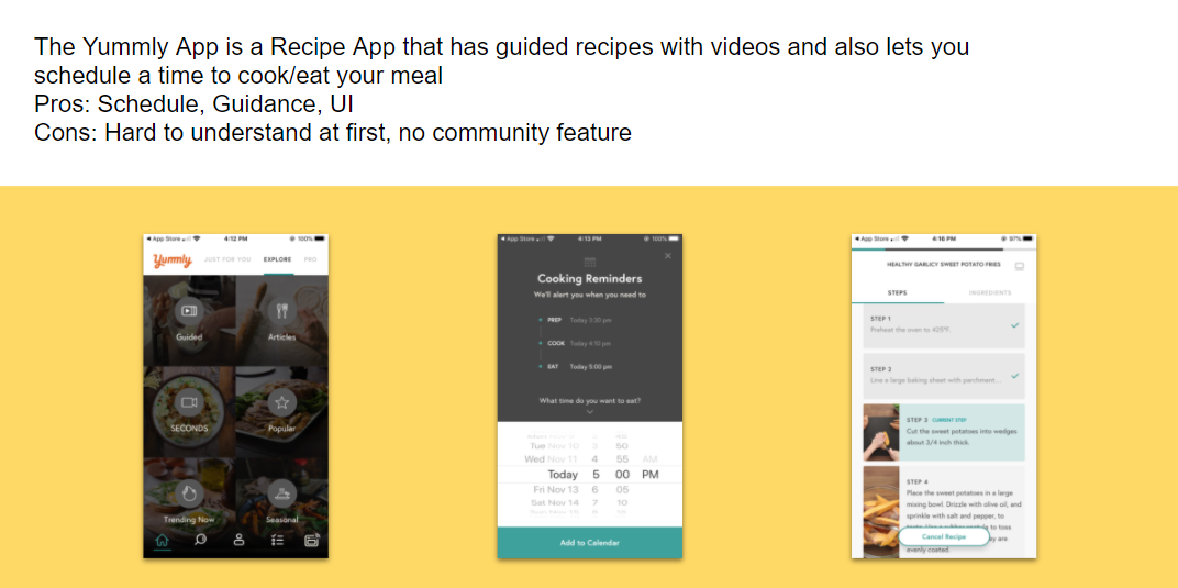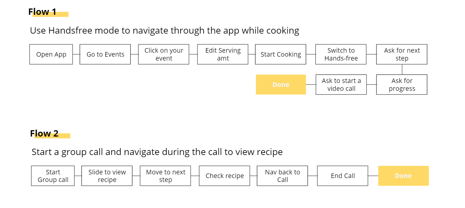 I started my research by talking to my friends and family who love cooking together. It’s fun when you have people around but not being able to meet each other has made it difficult to perform group activities like cooking a meal together. I started with brainstorming ideas about cooking together virtually and came up with a list of options/features that will be required to create a seamless experience: